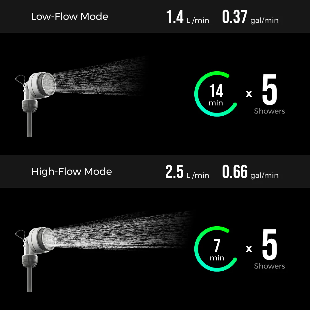 ظرفیت مناسب برای چند دوش سبک یا شستشوی وسایل و حیوانات در طبیعت.