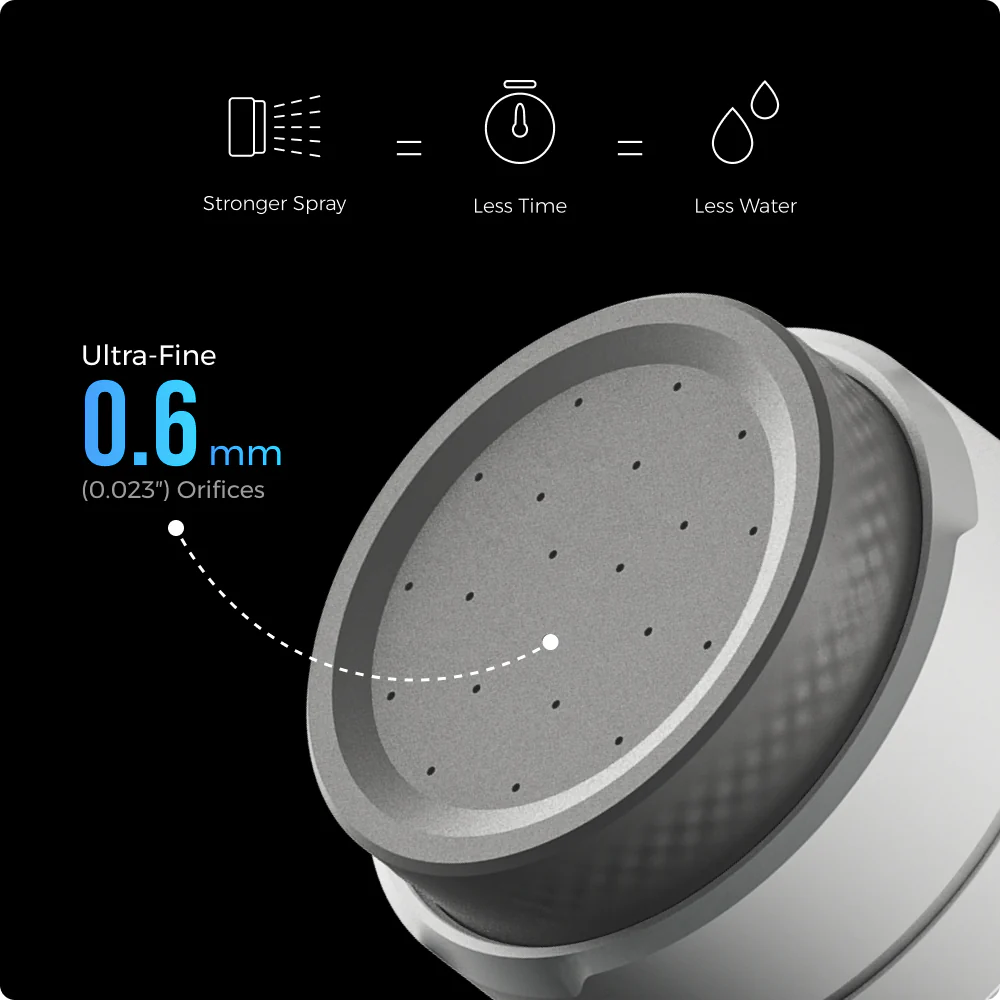 سر دوش با سوراخهای دقیق طراحی شده تا فشار آب بیشتر از مصرفش باشه، یعنی نتیجه بهتر با هدررفت کمتر.